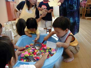 今日は、近所の「ひまわり託児所」の夏祭り。