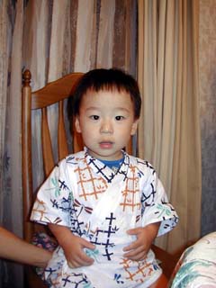 今日は、白山のおじいちゃん・おばあちゃんの家で ”ホームパーティー”っていうお祭りをやってました ご近所さんが沢山来て、おばあちゃんは張り切って作った料理を出してました。 夏のお祭りなので、ボクもこんな格好をしてみました。