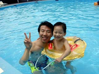 パパの社内旅行が新高輪プリンスでありました。 天気予報では雨だったのが、朝起きたらいい天気!! 遊びに出かけて一緒にプールに入ってきました。 最初のうちは浮き輪で楽しく遊んでいたんだけど、 途中でパパが浮き輪を外しちゃったから、大きなプールは怖くなっちゃいました。