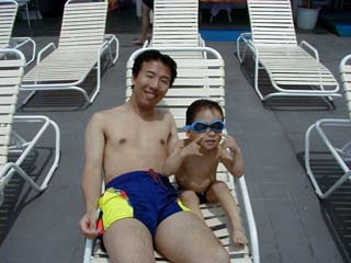 色白なボクもパパと一緒に日光浴。 パパのゴーグルは似合うかな?