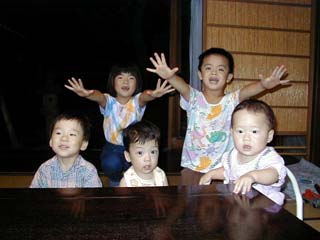 御津のおばあちゃんの家に行きました。 ボク達には関係ないけど、今日から夏休みが始まったので、 道路が大渋滞!! 着いたのは6時になっちゃって、ボク達も疲れた〜。 でも、かなちゃん・ひーくん・まーくん達とウマが合って、 沢山遊んで大満足!! ボクの隣にいるのがまーくんで、こーくんと双子なんだよ。
