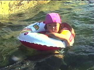 瑠香ちゃんはさすがに島っ子、泳ぎは得意です。