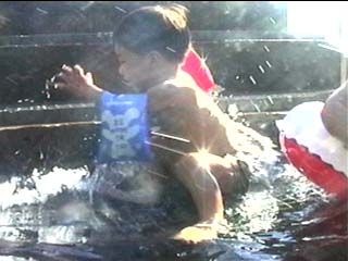 ボクは階段のところで水でピチャピチャするのが精一杯。