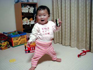 とうとう美南海ちゃんがタッチ出来ました!! おとといくらいから出来ていて、ボクがママに教えてあげたんだ。 だけど、ママがカメラを持ってきた時にはもう座り込んじゃってばかりいたんだけど、 今日はうまくとれました。 美南海ちゃん、とってもうれしそう!!