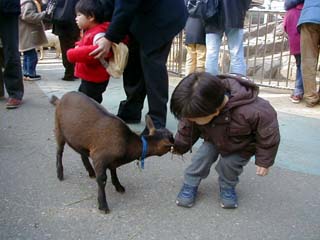 ヤギさんの赤ちゃんに青草ごはんを上げました。