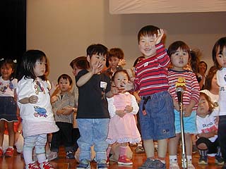 今日はラボパーティーの発表会。 ママとお兄ちゃんにまじって美南海も舞台に上がりました。