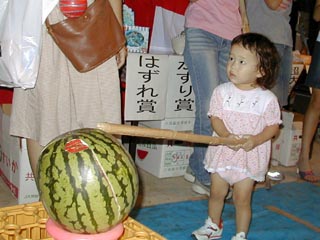 生まれてはじめてのスイカ割り。