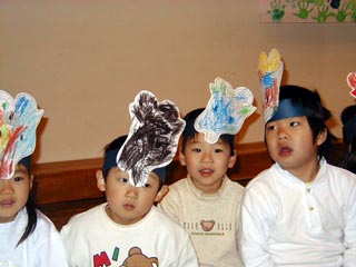こひつじ幼稚園の劇の発表会に行ってきました。 お兄ちゃんは「3びきのやぎのがらがらどん」の大きなやぎ役をやりました。 やぎのお面もおにいちゃんが描いたんだよ