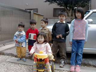 ひさのぶおじさんは新しい車を買っていました。 なんだか屋根が取れちゃう変な車なんだよ。 その車の前で、子供チームみんなで写真を撮りました。