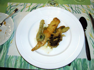 サラダはいろいろな野菜の上に飛び子がのっていました。