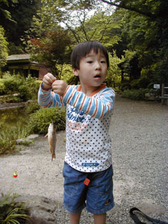 今日は、東丹沢グリーンパークっていうところに遊びに行きました。 ちっちゃな釣り堀でお魚を釣りました。