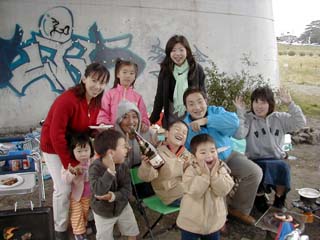 パパやママのお友達と多摩川でバーベキュー。