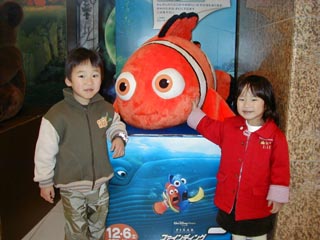 大きな音がしたりしてちょっとビックリしましたので、みなみは「こわいこわい」ってママやパパにしがみついちゃいました。 お兄ちゃんもこわかったらしいけど、ちゃんと見てました。 でも、ニモかわいかった〜。