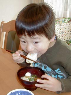 ボクは、おぞうにのお餅は5つも食べちゃいました。 ママとおんなじだよ。
