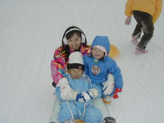 ボクはその間、ママとソリ遊びをしていました。