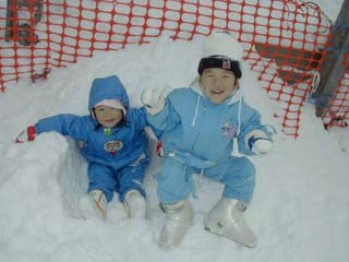 ママがスキーのれんしゅうをしている間、ボクとみなみで雪のおうちを作ってました。
