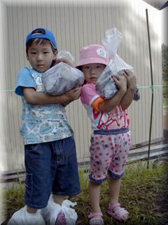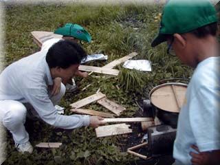 そのあとはバーベキュー。 パパが木に村長さんとかの名前を書いてもやしちゃったの。