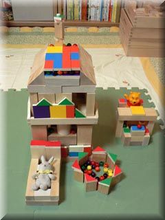 サンタさんからもらった積み木でママと一緒に遊びました。