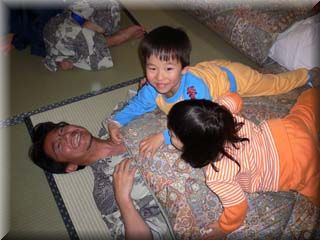 夜は真鍋さんや菊池さんや田代さんと沢山遊んで夜ふかしをしてしまいました。 お布団を使ったアンコウの口ごっこ、楽しかった〜。