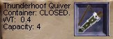 | ちょっとSouthKaranaに寄ったら、Thunderhoof君に会いました。で、QeyverをGetしました。このQeyver、中の矢が軽くなるとか、色々噂は有るのですが、今のところただ軽いQeyverと言うだけの事みたいです。情報持ってる人がいたら教えて〜。 Sellineは、以前Hirakkyから貰ったやつを、既にひとつ持っていたので、我が家のもう一人の弓使いのTolwarnにあげました。 |