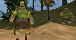 さて、筏に乗ってZoneしてから、また暫く走ると、乗り換えの為の島に到着です。この島にはOger達が住んでいる様で、Tamyには敵対心を持っていない様でしたが、Level30のTamyからは緑の弱弱の様でした。HighElfのおねーちゃん達が大型船の来る桟橋付近の村でキャンプしていて、このOger達を狩っていました。レベルがどれくらいかはわからなかったのですが、人少ないし、良い狩り場なのかもしれませんね。