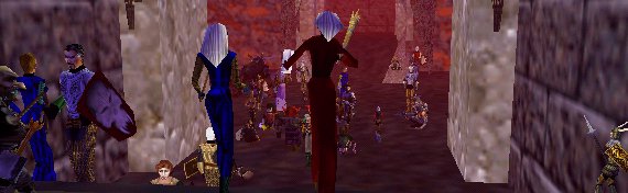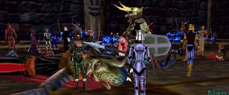 | 入って早々と言うか、GGで飛んだところでZone落ち・・・・。再びKaranaサーバに接続して、キャラクタ選択リストを見ると・・・。 お、どうやら生きてはいる模様。し、しかし、2nd PCのMottyの画面からは、一般MoBのPull中に、マエストロ君がADDして、壊滅状態に成っているとのレポートが・・・。あうあう・・・TT。しばらく待ってからようやくLogin。しかし、Campポイントに行く前にグール君に見つかってしまい、止む無く死亡。1回目の逆Ding・・・・ T T 。復活後も2度程逆Dingしましたが、Exp Back Rezのおかげで、どうやら52でいられる様でした。 |