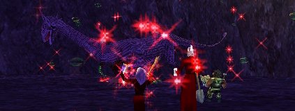 | うほほ〜!やっぱりデカイねWurm君。でも、Tamy様が来たら、もう死んでるも同然よ!Snare・Fearのおなじみコンボでサク・・・・・・ぼ〜(待ち時間)・・・・・・サク・・・・・・ぼ〜(WurmいないTT)・・・・・・と狩りをして、ようやくG鱗を2枚Get。その後、Tamyが作っておいたX鱗1枚と、更にSolCでもう1枚作って、それぞれOlteaとSyufarにあげました。ふたりとも3枚揃ったね。あとはFVのQuestだけだ。がんばれ〜! |