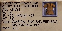 このCaveに来る目的は、SoVで追加された各クラスのSpellを取るための様でしたが、生憎今回は1枚も出ず。 代わりに左のTunicやらなにやらが出ました。上の革鎧は、キャスターも着られるのが面白いですよね。下の布鎧も、着ると革装備の絵になりました。INT+3なので、そこそこ嬉しいかもね。どちらも、初期のキャラが着たら、それなりに良いものみたいな気がします。 |