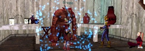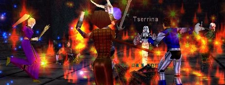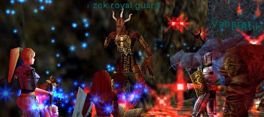 | Repopの時間を気にしながらも、何とかEfreeti Roomに到着。まずはPHのImp君にちんでいただきました。まだここに慣れていないメンバーも多かったので、無理をしないでやろうねということになり、チョット雑談しながらのんびり遊んでいたら、いきなり当りの靴屋さんPOPです。エイエイ!と退治して、Lootすると・・・おお、金靴です。まだ持っていなかったSyufarさんに皆からプレゼント!。さて、repopを狩りながら靴屋の親父さんが出てくるのを待ちます。と、またまた靴屋さんPOP・・・いや、違いました。指輪屋さんでした。でもNP NP。そして・・まさか3連続POPは無いだろうと思っていたところへ・・・今度もまた親父さんPOP。うはは! |