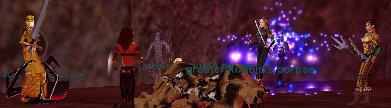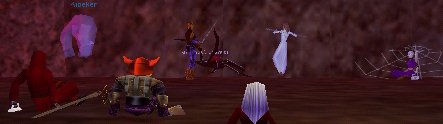 | Souriさん達と、Poolでキャンプ。Level46のTamyからは、どうやらこの辺はぎりぎり青。つまりは余裕 ^^;; 。大好きなDRUスタイルに変身して、「エイエイ!」と殴りかかって遊んでいました。Healerがいなかったので、Mottyがママ役でHealしてたけど、いなくても何とか成りそうな雰囲気でした。 |