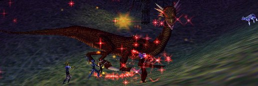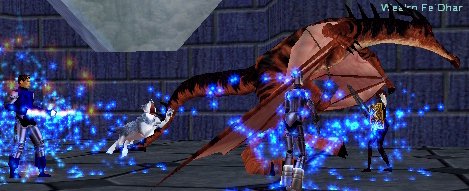 | この辺りに出る敵は、写真のワイバーンタイプと白のWurm、そして白キューブです。白キューブは、かなり魔法が入りにくい模様。Snareいれるのにも一苦労です。大きな白Wurmですが、今日のメンバーだと、余り苦も無く倒せました。 |