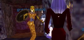 | そして最上階。ここの名物、Levelが合えば一粒で2度美味しいバンパイア君入りのBatをちなして遊んでいたら、有るときバンパイア君の代わりに天使の様な羽の生えたTesrrinaちゃんがポンと現れました。うほほ!当りだ〜!。 |