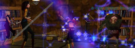| さすがにMikoさん強いです。Tamyは味噌とAugを配って、あとは、Hateが上がらないように気をつけながら、形ばかりのSVM下げとSlowを入れて、ぬくぬくしていました。 と・・・ところが・・Bat君1羽と戦闘中に、Miko3が突然画面上から消えてしまいました。あら???。Bat君、しばしひとりでぎゃぎゃー騒いでいましたが、はたとTamyの方に向きを変え、ズンズン近づいてきます。MikoさんLDの模様。うはは、やばめ〜!、しかし、Bat君のHPはあと2bbl程。う、何とか行けるか・・・・Mez&DDを繰り返す覚悟で臨戦態勢を取ったその時! |