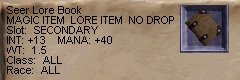 ワイバーンの1匹が落していきました。INT+13はすごい! 装備すると、開いた本になりました。LureさんがGet。おめでと〜! |