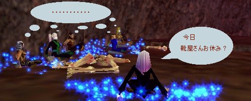 門番の二匹を軽くちなしたあと、King RoomのPullに失敗して4Inc。耐えきれずに半壊。Tamyもちぼうしてしまいました。気が付くと、そこはSkySharine。「ああ、昨日Bindして、Lavaに戻すのわすれてた・・・」。でもまぁ、Takixさんいるから、すぐに変えれるだろうと思っていたら・・・・。Takixさん、裸でTamyの前にPOP。あう、ダメじゃん!Takixさん唯一のCLRだったのに!(笑)。