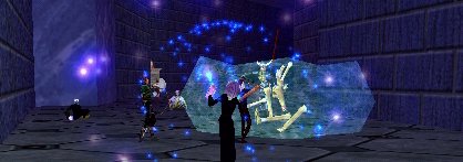 | 流石に手馴れたメンバーがたくさんいるので、下層の建物のところまではサクサクと進みます。一緒に手伝ってくれたTakixさんも、前日失敗していたとの事で、しきりに「ふむふむ、なるほど・・そうやるのか・・ふむふむ・・・」てな感じで、進行の具合をメモしていました。Sellineは、「うむ、良く勉強して行く様に!」等と偉そうにしていましたが、実は皆の後をついてまわるだけの金魚の糞なのでありました。^^;; 。その後は、Pullなどにチョット梃子摺りながらもPrins君をKillして、まずはENC用のQuest ItemをGet。続いてOverKingとの決戦場に進みました。 |