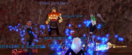 「Tamyが来たなら・・・Efreetiにでもいこうかぁ」と、突然言い出すGikonekoさん。う・・・まぁ、Imp君たちもかなりの割合で寝てくれるようになったし、ま、大丈夫かな? と、言うことで、すたすたとDB Roomへ。まわりのLB君達を順調に片付けて、いざImp君退治! が、かなりの苦戦。これだけのメンバーが揃っているのにね。よくよく聞いてみると、みんな始めてでは無い物の、チョット不慣れなところが有ったみたい。最近手馴れたメンバーとばかり来ていたのですっかりImp君も怖くなくなっていましたが、やっぱ3匹も来ると強かったのね^^;; 。
