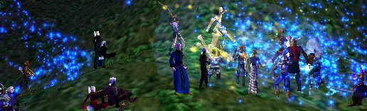 | 全くこの人達はも〜う! 何と、いたのはKecchan・Citanx・Mignon・Lovekage。そこへSelline・Mottyを加えると・・・・・なんと6キャラクタ3プレーヤー。つまりは全員2ACC・・・・。Kecchan曰く、「この辺までは楽よ・・・」。うむむ・・・。 |