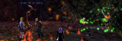 | メンバーは、Maryer・Oltea・Yizelt・Sheffield・EilohmそしてTamyでした。今日行った場所は、GDのGnomeの町から川沿いにCaveに入り、最初に左手に入る横道を入って、暫く行った辺りの適当なくぼみでした。この辺りのWurmは、Level 51のTamyから見ると、ほとんどが青、そして、一部の弱いクラスのWurmが緑で、No EXPです。Level40台後半のPartyに良いところかも知れませんね。Wurm君には、インビジが効くのですが、インビジを見破るWurmもいるみたいなので、外から順順に掃除して行った方が良いかも知れません。ENCのMezは入らないのですが、Charmは効くようです。 |