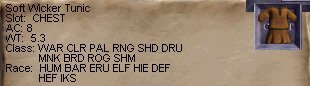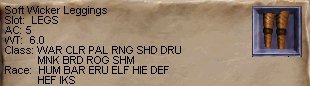 | Soft Wickerシリーズ 革装備 胴・脚等一式 緑の革イメージで、なかなか良い感じの装備でした。 NewBe用おしゃれ装備ってとこかも。 一式揃えて見ました(右写真)。 |