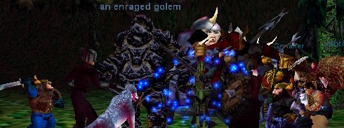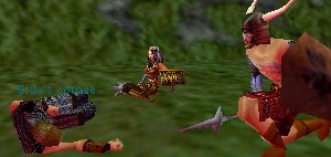 お土産に、DRU専用で、クリックすると180DmgくらいのAE DDが発動する杖を貰って帰ってきました。この杖のエフェクト、キャストタイムが長いことを除けば、使いたい放題!Mottie辺りに持たせると、かなり便利かも!し・・しかし・・・Level37のMottieに持たしたら、杖くんに「レベル低いからダメ〜!」といわれてしまいました・・・とほほ・・・。