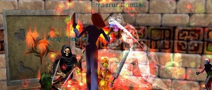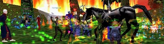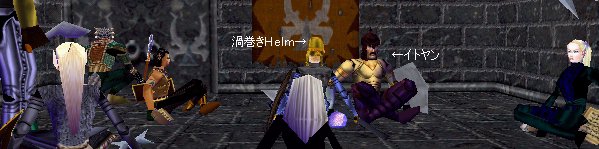 | MoonsがKCで遊ぼうというので、SellineでHand Roomに行って来ました。皆のレベルが上がっていることもあって、以外と楽ちん。Namedも出たけど、たいしたItem出なかったような・・・・。でも、今日はPullerのMoonwindが、うっかり下の階に落ちてしまい、戻れなくなると言う事件が・・・・。全員でMoonが落ちたところから下の階に下りて、Moonを救出しました。下に降りたのは、始めてだったので、楽しかったかも・・・^^;; 。IKS専用のHelm、Helm of Rileとか言うのが出てました。Moon Thank You! |
