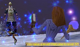 MottieがSnare Pullをして、適当な位置まで着たらMottyがRoot&Fire系DoTとSwarm系Dotをいれます。Mottieも弱いSwarm系DoTをいれたら、後は座って待ってるだけ・・・。ちょうどDoTが切れるかな?と思うころに、ひげGiantのおじさん経験値に変わってくれます^^;。 で、そうこうしているうちに、MottieがDingで、Level37になりました。裏ヘルともおさらばです。^^;; |