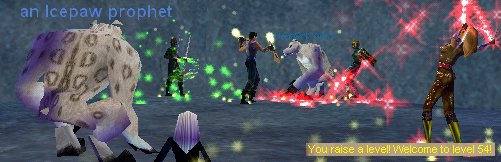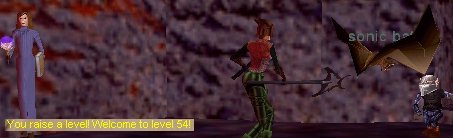 | Selline・Motty・Kisamara・Yashakurou・Hangetu・Wanpで、Bat Room辺りでセコセコとEXP稼ぎ。そろそろ緑のLBやBatがちらほらしているレベルですが、やはり数をこなすとEXPの貯まり具合は良いみたいですね。SellineがDingして54に。これで、Selline・Motty・Tamyのレベルが横並びになりました。ふぅ〜・・・・。 |