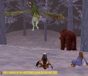 SnowGriffin狩りが続きます。Sowを掛け、インビジも掛けて、TrackingをしながらEWの南側半分を行ったり来たり・・・Manaが余り始めると、近くのマンモスやら何やらを虐めて、MottieのEXPも稼いで遊んでいました。おかげでMottieはLevel38に。一石二鳥で、なかなか良かったかもね。^^;; |