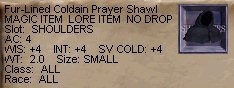 | で、これが貰ったショール・・・・ここまでだと、まだまだ他にもずっと良い物がありますよね・・・・Tamyは即装備でしたが、MottyはまだKKでゲットしたショールを使っています。しかし・・・・この先二人分作って行くのは地獄の苦しみかも・・・^^;; |