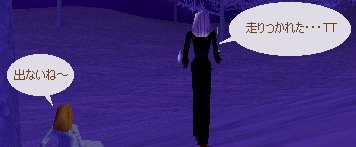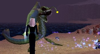 ENCが不足してるとの事だったので、Tamyを出して、MottyのTaxiでCSへ。先に来ていたメンバー、少々待ちくたびれていた感じで、Tamyが行ってmiso等を少し配った辺りで戦闘開始。水の中から、ちょうちんアンコウの様なドラゴンが這い上がってきて、一斉にTank陣が襲いかかります。Tamyは、ころあいを見計らってTashaniの魔法をいれたのですが・・・直後に大ダメージを続けざまに食らってちぼう・・・。Tashaniくらいでそんなに怒るなよう〜TT。 Tamyのほかに、Nanakoも来ていて、大概の人にはMiso掛かっていたし・・・Tamy役立たず編って感じでした・・・・・・・・・・・・・ふぅ・・・・・TT 。 |