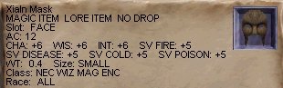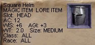 唯一の出物といえば、これかな? ALL ALLのPlate Helmです。TamyがLottoに勝ってGetしました。でも、付加属性がWIZなので、Tank系以外ではDRU・CLR・SHM辺り? 。Mottyにかぶらせてみましたが、Humanなので鉛筆頭に・・・Mottieにかぶらせると宇宙人だし・・・それに、Tizmak装備にあわないのよね〜^^;; 取り敢えず、Tamyにかぶらせてみました。 → |