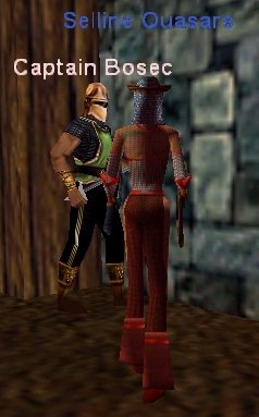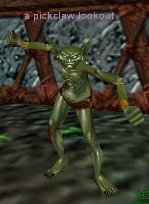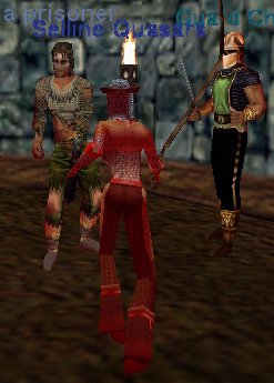 | Bankから更に奥にあるJailの住人のPrisoner君です。 Jailを歩いていると、囚人のくせに扉を開けて襲ってきます。でも、おそらくLevel12〜15位(はっきり解りません)なので、弱弱です。6人位が各部屋にいて、それぞれバラバラに襲って来るので、Levelが合えば、良い経験値の稼ぎ場になるのかもしれません。 戦っていても、Guardは何もいいませんし、Factionの変化もありません。逆に、Guardに助けを求められないので、逃げる時はHighPassのZoneまで一気に駆け抜ける必要があります。 |