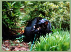 | ピピンはどんな子だったかと言うと、 とても甘えん坊で、人なつっこい子でした。 そして、とても賢い子でもありました。 我が家では、他の猫から病気を移されたり、 交通事故などに巻き込まれる心配もあるので、 猫は基本的には家の中でのみ飼い、 人間が見ている時だけ、短時間だけお庭へ行き、 日光浴をしたり、草を食べるという、飼い方をしています。 ですから、ピピンは基本的に、 いつも家の中で生活していました。 目覚めている時は、一番大好きだった、 母の後にいつもくっついている子だったのです。 母が台所に行けば台所、 2階へ上がれば2階へ、という風に。 また、お姉ちゃんのピエスにもとてもなついていました。 ピエスはもともと、自分が人間だと勘違いしているらしくて、 基本的に他の動物があまり好きではないのですが、 ピピンも子猫時代から子猫特有の ジャレて、ピエスにちょっかいを出してましたが、 ピエスに怒られても怒られても、その人なつっこさで、 何度でも近づいていってました。 ピピンが成長してピエスより体が大きくなった後でも、 それは続きました。 (ピピンはいい意味でとてもピエスに甘えていました。) けれど、耳も聞こえず、足腰も弱いピエス姉さんに対して、 決して後から飛びかかるみたいな、 不意打ちは絶対にしなかったし、 常に“私がトップよ!”っていう、ピエスの気迫に、 気後れしたのか、遠慮していたのか、 いつも最後はピエスお姉ちゃんとの格闘では 負けていました(笑) また、犬のパークとの関係でも、 お散歩中に見かける猫に吠えまくる猫嫌いのパークに対しても その人なつっこさで、ピピンはパークにも甘え、 しばしば舐めてもらってました。 パークからすると、ピエスには近づくと猫パンチされ、 その稀薄に、一目を置いていたけれど、 ピピンはとにかく可愛い弟、って 感じだったのではないでしょうか。 それと、ピピンは、とてもお行儀の良い子でした。 何度か注意するだけで、家具の上のほうへ行って 悪戯をしたりする事もしなくなったし、 食卓に乗っている人間の食べ物には 決して手をつけませんでした。 ピエス専用の流動食を絶対に食べる事も しませんでした。 まあ、こんな感じで、 ピピンは甘えん坊で人なつっこく、賢い子でした。 そうそう、僕に対してもとてもなついていましたよ。 僕が会社から帰ると、僕の後にくっついて歩いてました。 2階へ行けば2階へ、1階へ戻れば1階へと、 ついて来るのでした。 そして、僕がお風呂へ入ると、 お風呂の外で僕が出るまで、待っているのです。 風呂の中から覗くと、曇りガラスの向こうに いつもピピンのシルエットが見えてました。 |